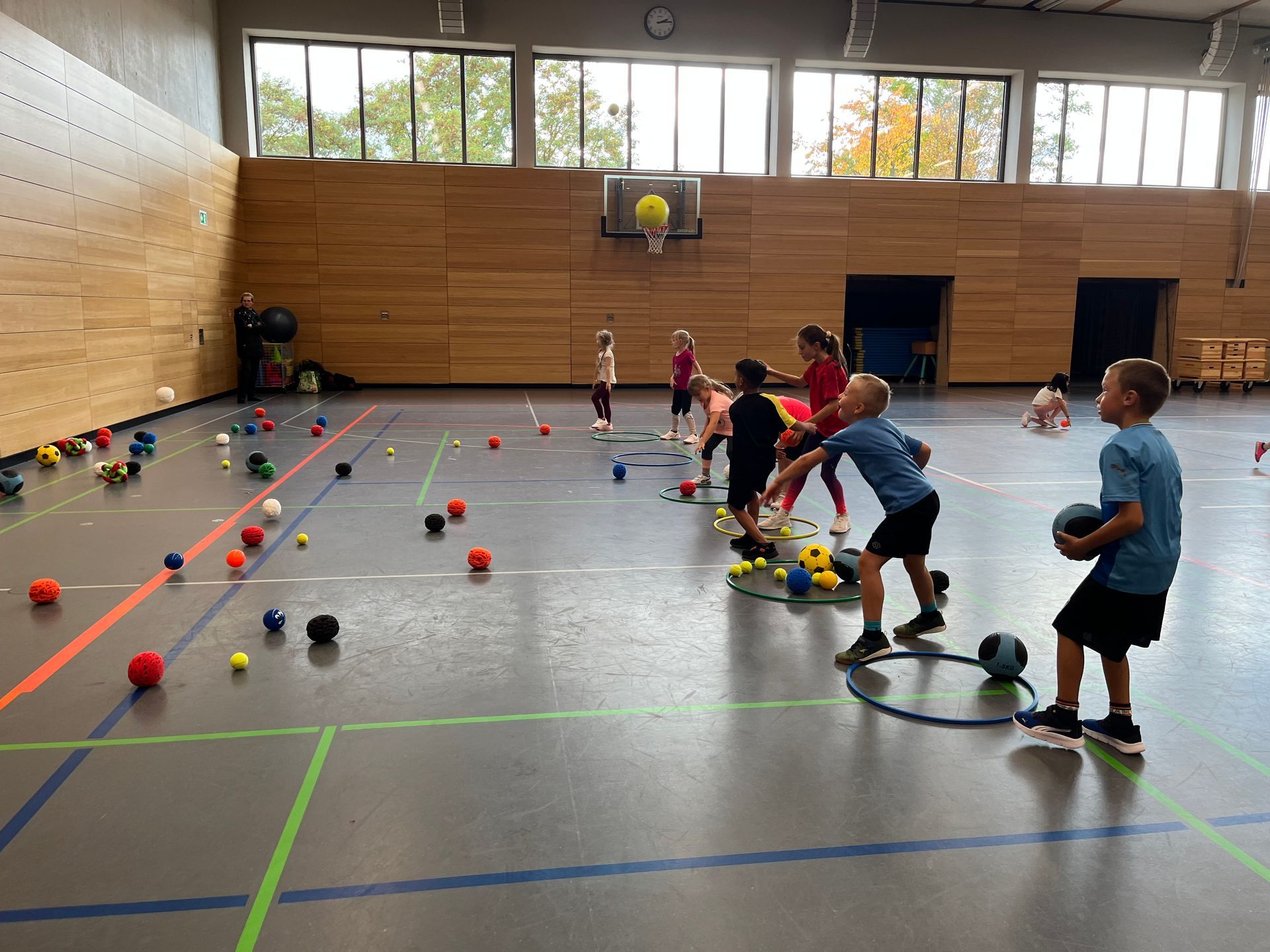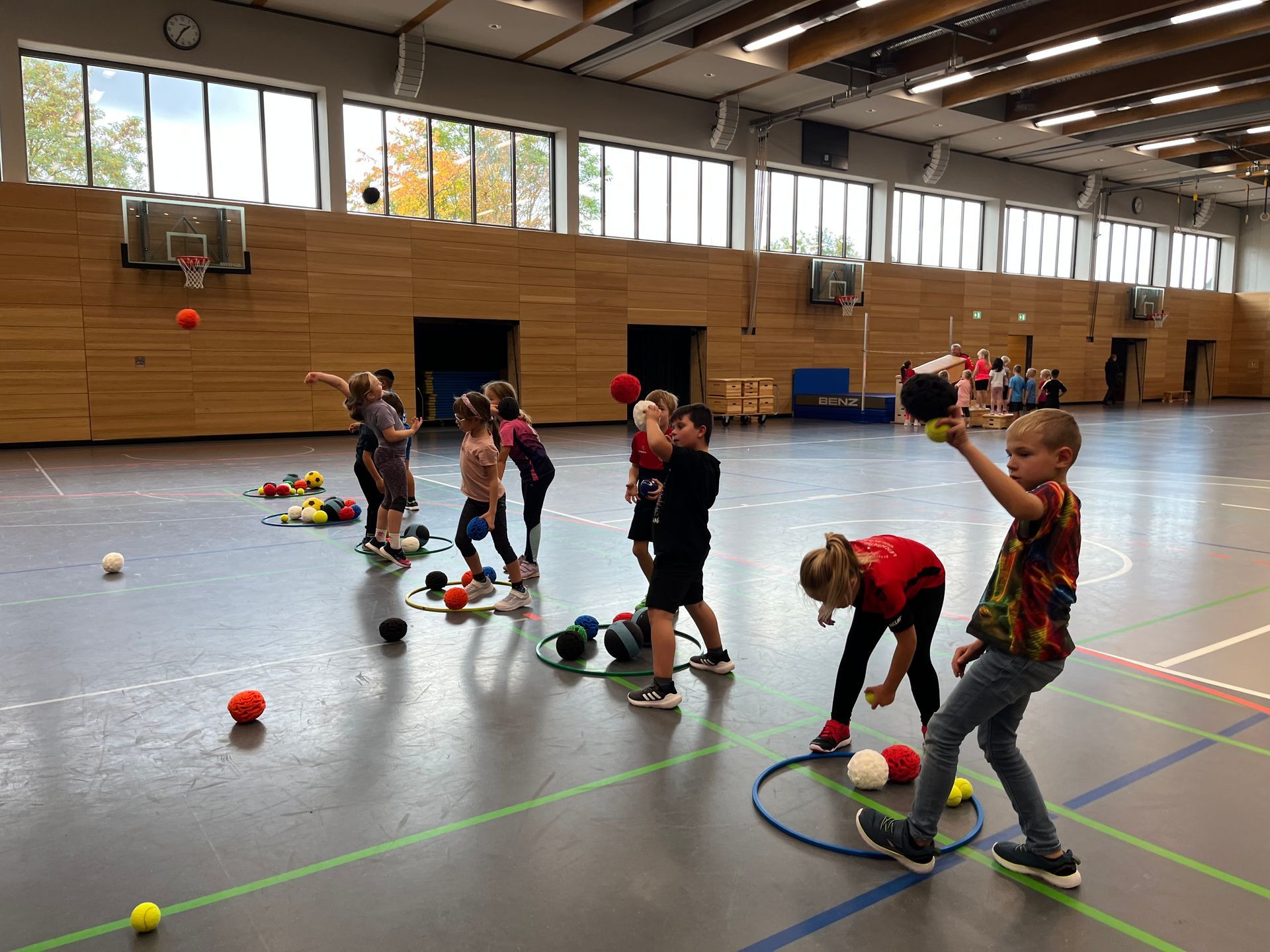 Wurfübungen. Zum krönenden Abschluss spielten wir Treibball - Mädchen gegen Jungs.