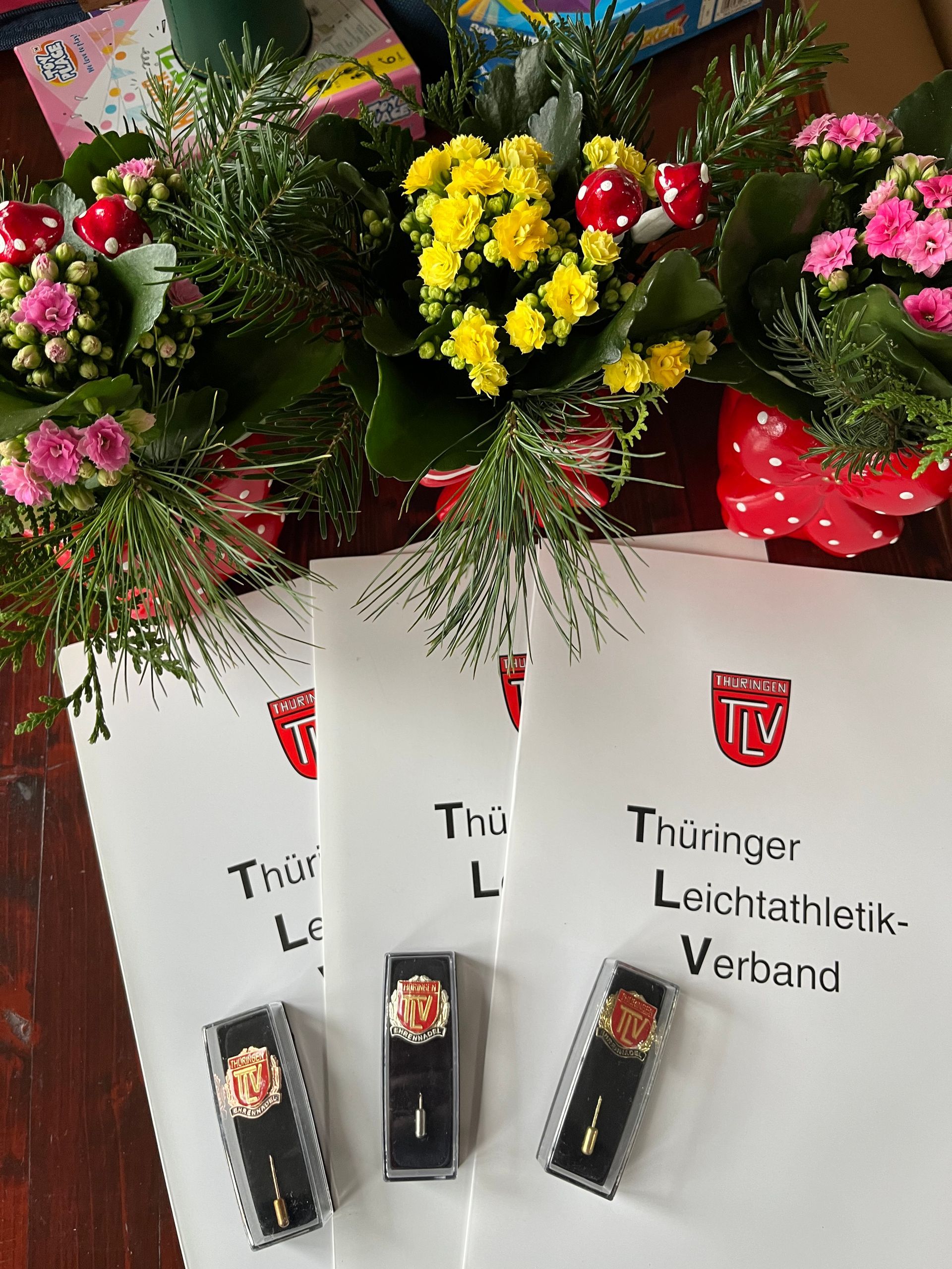 mit der Ehrennadel in Bronze, der Ehrennadel in Silber und der Ehrennadel in Gold des Thüringer Leichtathletik Verbandes e.V.
